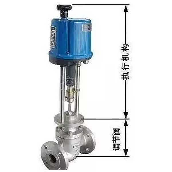 如圖是電動調節閥的典型外形,它由兩個可拆分的執行機構和調節閥(調節機構)部分組成。上部是執行機構,接受調節器輸出的0~10mADC或4~20mADC信號,并將其轉換成相應的直線位移,推動下部的調節閥動作,直接調節流體的流量。各類電動調節閥的執行機構基本相同,但調節閥(調節機構)的結構因使用條件的不同類型很多,最常用的是直通單閥座和直通雙閥座兩種。